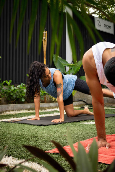 A quiet, green space for yoga, surf warm-ups, or grounding barefoot time.